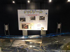 体験ゾーンでは魚を触ってみたり、餌をあげられる水槽があります。