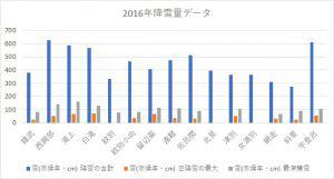 2016年網走・北見・紋別エリア降雪量データ