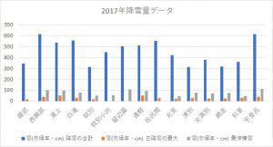 2017年網走・北見・紋別エリア降雪量データ