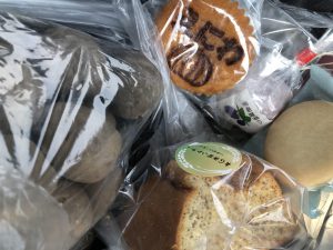 多くの人が、野菜と果物を買い求める中、私はひとりすぐ食べられる甘いものを探していました(^-^;