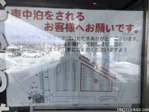 反射で私まで写り込んで見にくいですが、車中泊の場所について案内が貼ってあります。