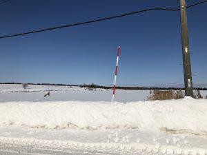 北海道の道路は周囲が畑や林でその真ん中に少し土が盛られて道路が造られている場合があります。