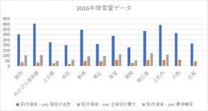 2016年は全体的に合計降雪量が少ないですね。